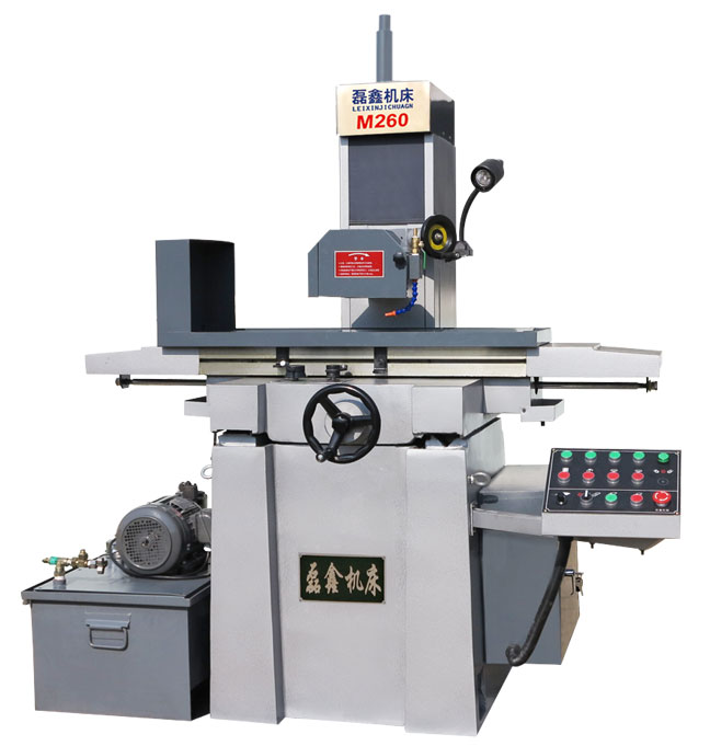 M260YHR液压平面磨床X轴采用液压传动系统,该液压系统由一套电机定量泵组成,泵最大流量18L/min,电机功率1.5KW,泵的工作压力可达3mpa,系统压力由溢流阀调节,系统主机械阀为磨床专用阀,由换向控制和节流调速控制两部分组成,节流阀调速部分还有卸荷功能,可实现工作台的启停,此阀同时具备缓冲调节功能。本机床磨头配有快速升降机构及手动微调装置,操作方便、加工精度高、运动稳定、热稳定性好、噪声低,维护保养方便。